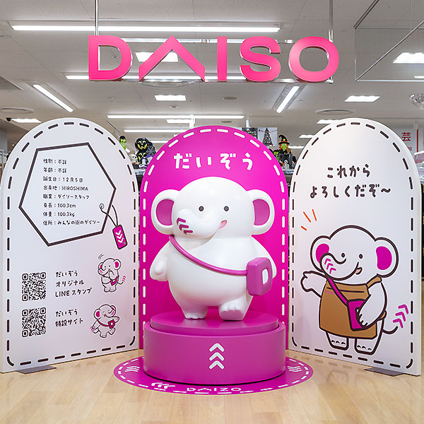 株式会社大創産業様からのご依頼で、公式キャラクター「だいぞう」の等身大フィギュアを製作させていただきました。