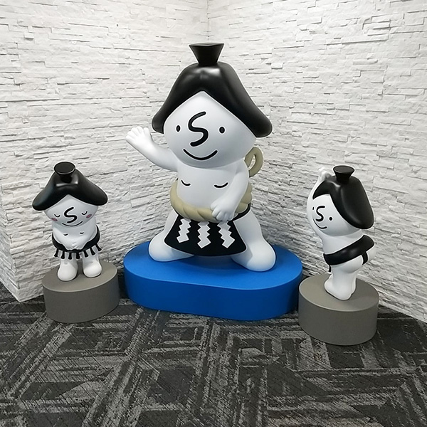 株式会社シン様のご依頼で、「すもっとくん」等身大フィギュアを製作させて頂きました。鳥屋野不動産様の入り口に設置されております。