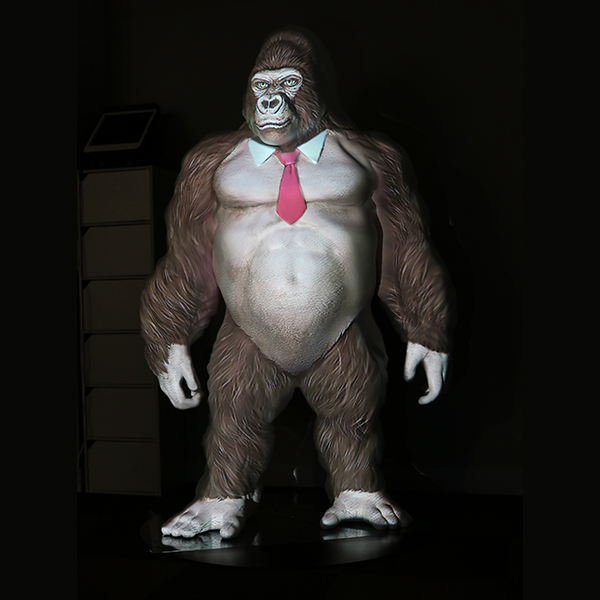 大人気漫画家 大友しゅうま先生のキャラクター「イケメンすぎるゴリラ」フィギュアを製作させて頂きました!白一色のフィギュアを製作し、プロジェクションマッピング。