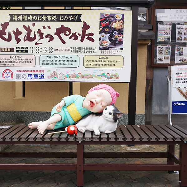 兵庫県福崎町様からのご依頼で、妖怪ベンチ「座敷童子」を製作させて頂きました。「もちむぎのやかた」の前に設置されてますよ~