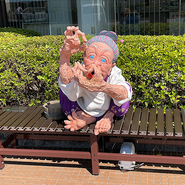 兵庫県福崎町様のご依頼で、妖怪ベンチ「山姥」を製作させて頂きました。株式会社マルフク様の入り口に設置されております。